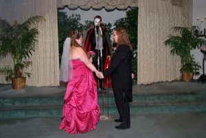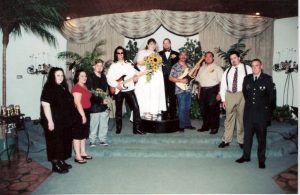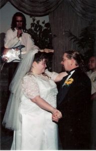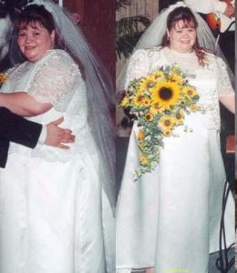 I was over 300 pounds at that point but I don’t think by too much. My mother in law had to make my dress for me because at that time getting a wedding dress for my size was just way too expensive and they all looked like crap anyway.