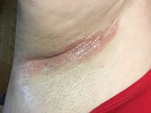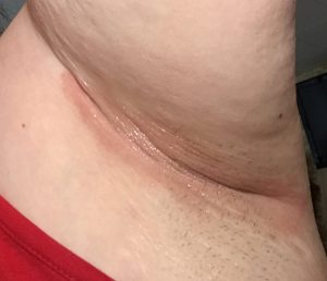I checked it out in the mirror and there was some slight pinkness in the crease of my pits and I thought: “Huh…that’s weird. Did I shave wrong or something?”